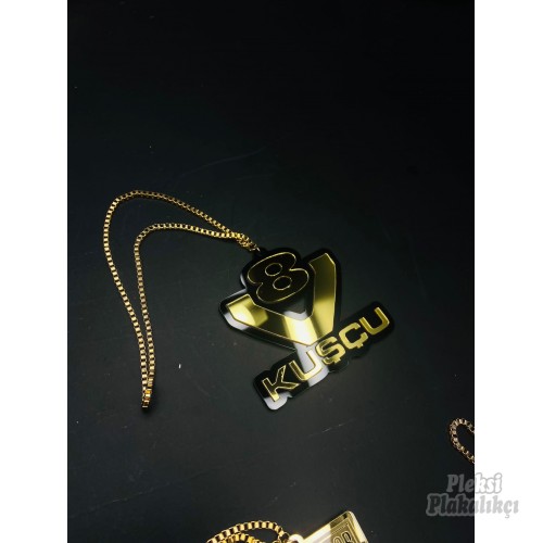 Paket İçeriği : 1 adet Kabartma Harf Pleksiglass Ayna Süsü + Zincir